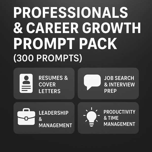 Professionals & Career Growth Prompt Pack: 300 AI-Powered Prompts for Resumes, Interviews & Career Success